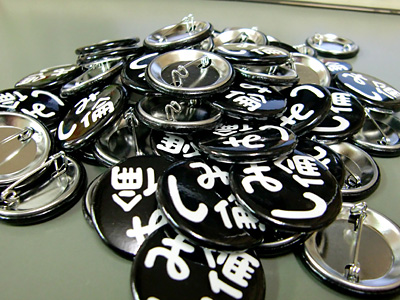 ってかさ、この缶バッジ。最初は「欲しい人に送ります!」的に考えてたんだけど、50個分の送料考えると高くつくのでやめました(50人もの個人情報をもらうのもどうかと思うしね)。