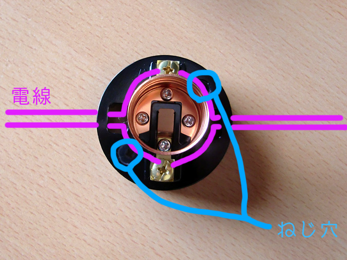 ネジ穴がこの位置にあって、電線がこーいう風に通っていくわけですね。