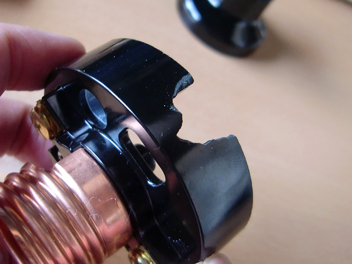 しかし、電線を通すには当然このソケットに穴が開いてないといけません。
