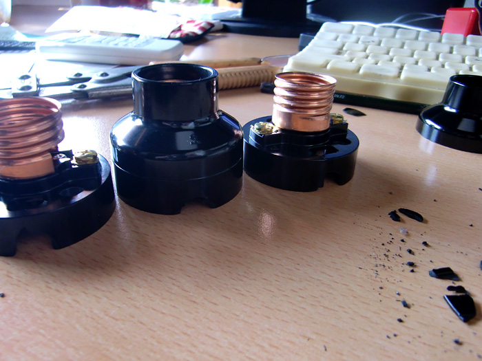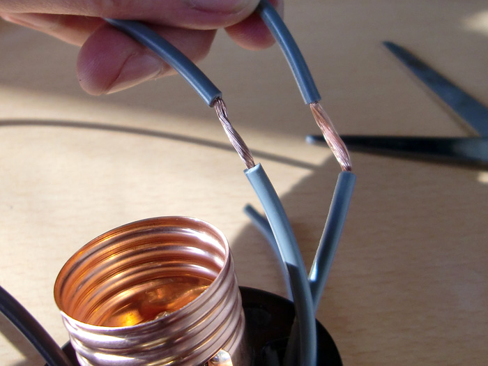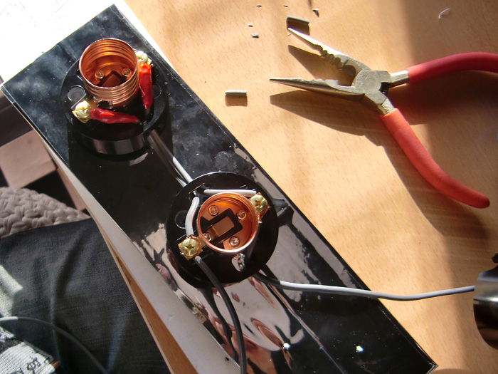 このベースは置いといて、次に一番端のソケットと電線を繋ぎ合わせます(これは場所を決めてなくてもできるので)。