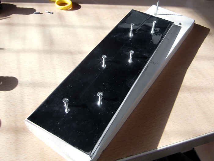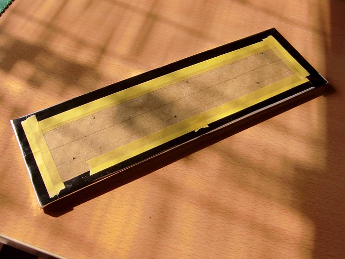 こちら側(写真のマステが貼ってる側)が上に来るため、この部分にアルミが貼ってないと意味がありませんので、改めて26×7cmくらいのアルミシートを切り取って貼り付けました。