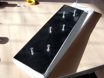 とりあえず、アルミシートにも穴を貫通させておきます(ソケットを留める際に、すんなりネジ穴を通せるように)。