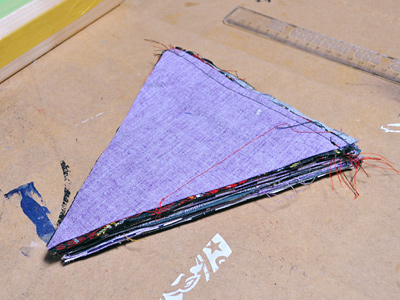 10数枚裁断して、裏表違う柄で一箇所縫いするところまで完成。
