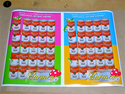 このデザインは、そう、有名なアメリカンポップのアーティスト「アンディ・ウォーホル」という方の作品をパロったポスターです。