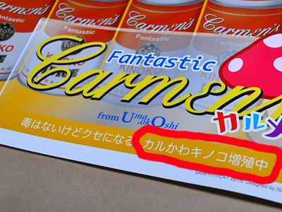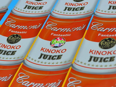 缶には「ファンタスティックカルメン」「ファンタカルメンロゴ」、そして怪しげな「キノコジュース」の記載。
