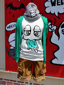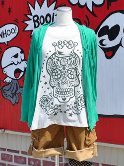 んで、普通にボクが着て撮影等を行ってた緑のメキシカンスカルTシャツです。