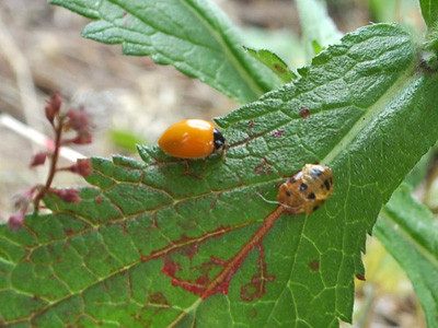 初めてですのでこれが本当にテントウムシかどうかは定かではありませんが(多分テントウムシ)、脱皮したてってオレンジなんですねぇ。知りませんでした。