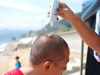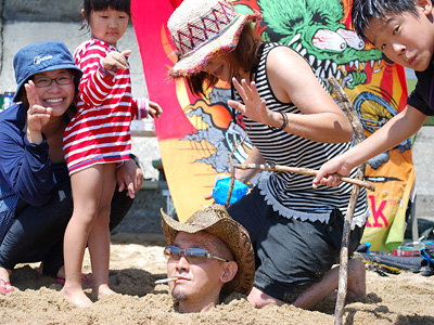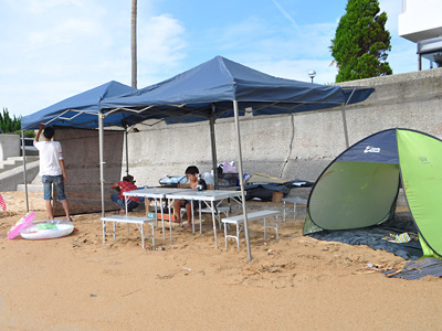 8時頃、いもうと達がやってきて海岸にベースを設営。