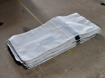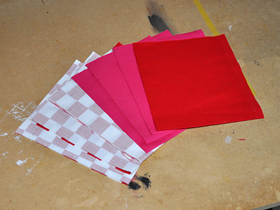 さらの表布3枚と、タグを縫い付けた表布1枚。