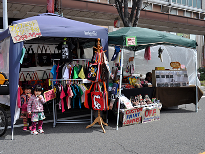 何度もテントが飛びそうになったところを、イベントスタッフさんや出展者さん、さらには通りがかりの人達にまで「テント押さえ」を手伝ってもらって、何とか事なきを得た次第です。