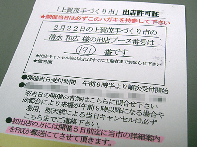 んで、これが送られてきた当選通知票って感じの出店許可証。