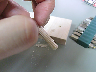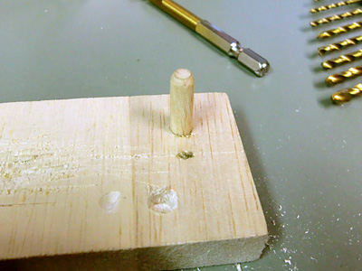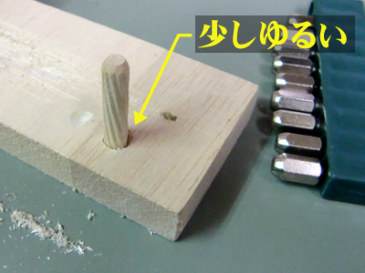 そしてこの孔に6mmのダボを差し込んでみます。
