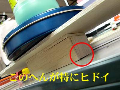 切ってる時、確かにこの4mm(バルサ材の厚さ)は厚いなぁと思ってたんですけど、ここまで弊害があるとは・・・。