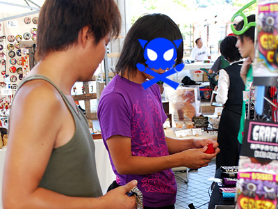 次に、前回の六甲出店で知り合った、ベーグル屋さんWILD WILD BAKEさんの足立さん(安達さん?)と平岡さんがご来店。腕章を買ってくださいました!