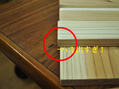 これ、設計図でいうと「i〜l」に当たる板なんだけど、なんでだろう・・・。きちんとサイズを説明して切ってもらったのにねぇ・・・。
