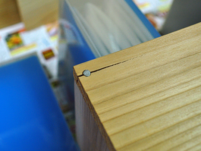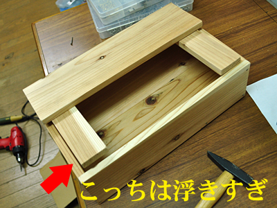 もちろん気にせず、さらに一方の釘を打ち、とりあえず蓋部分完成。