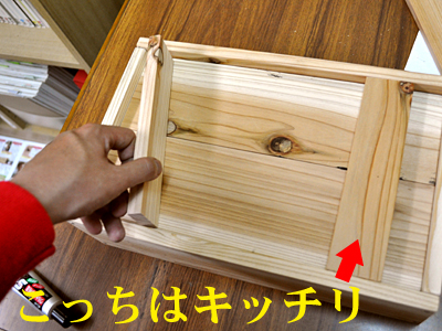 たかが箱の外枠を作る作業なのですが、この4ヶ所を留める過程で、ボクの腕が上がっていくのが見えたかと思います。