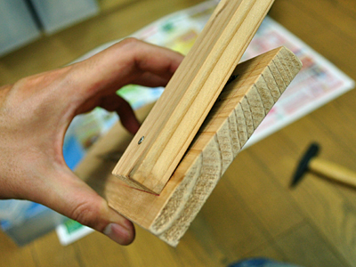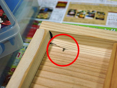 外枠と底を留めるために、ポイントを入れて釘を入れますが、