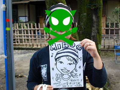 とりあえず、大仲さんがTシャツ買ってくれたので「似てない似顔絵企画」発動です。