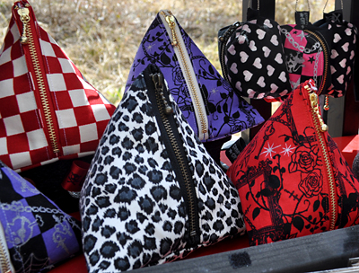 オリジナルプリント生地を使ったぺたんこポーチ。