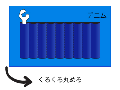 長方形の布に工具を差すやつを付けて、海苔巻きみたいに丸める感じのものです。