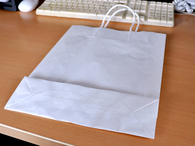 普段のイベントで、お客様がお買い上げ下さったアイテムを入れる紙袋は、いもうとがどこかのホームセンターで50枚980円で購入してくる白い紙袋です。