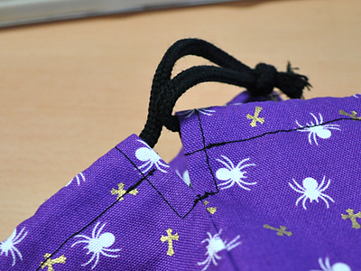 彼女の「適当さ」で裁断した布の歪み具合に、多少の疑問を感じながらもとりあえず、初作品となる巾着が完成!