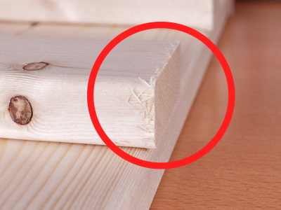 前回、切断後に木材がかなり歪んでたのに気が付きましたので、今回は購入時点からかなり念入りにチェックしました。