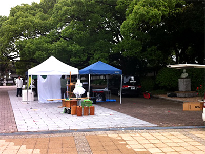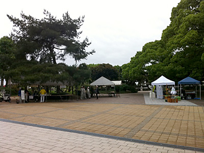 午後から雨らしいのでどうなるかわかりませんが、とりあえず、須磨離宮公園では「第7回 離宮手作り・クラフトアートフェア」の準備が進められています(出展者さんは4組ほど)。