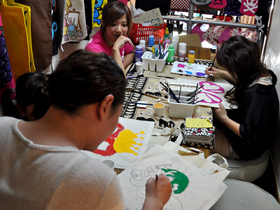そして、スタッフのみやこさんと共に「手描きエコバッグ」企画に参加。