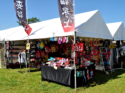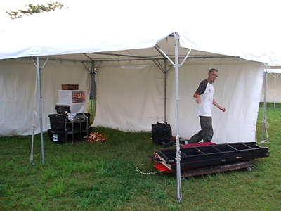到着した時点で、すでに多くの人たちが設営に取りかかってます。ボクらもブース場所を確認して搬入・設営開始です。