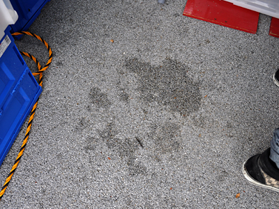夜の雨のおかげでテントの上には水が溜まっており、そこから雨が浸み落ちて什器類の一部が濡れておりました。とほほ。