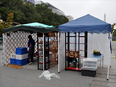 前日搬入の時に3番目に来られてて、会場にはボクらしか居なかったもんですから「どーしよう?」みたいな状態だったところを声かけさせてもらいました。