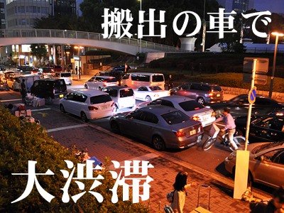 これから、駐車場から車を出して、会場横の道に路駐して荷物を運搬し始めるわけですが、