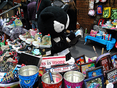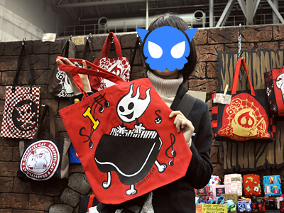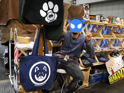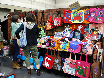 手描きエコバッグを中心に、ショルダーバッグ、スクエアトートバッグ、二日目にはカル雑貨等が並んでおりました。