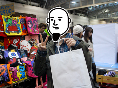 ブース自体も、前回の手描きエコバッグ展と比べると少し暗かった感があったし、それも一因かな。今後の検討課題だな。