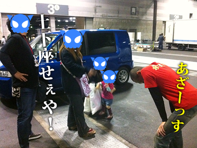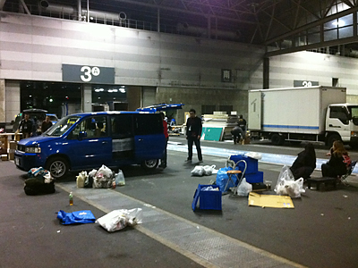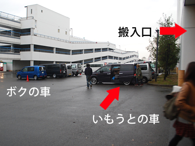 この時間帯は小雨で、徐々に雨がきつくなる感じでしたが、いもうとが結構いい位置に駐車したので、搬入はさほど苦労しませんでした。