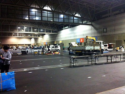 今回は過去最高の1400ブースもの出展ということもあってか、到着時にはすでに10数台の車が並んでおりました。