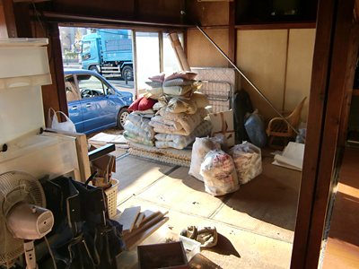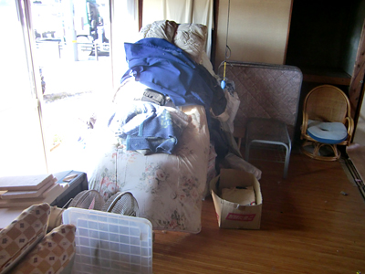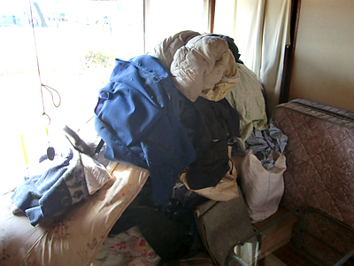 ゴミは窓際から外に運び出しますので、一番大きな窓前を空けるべく、今回はその窓前にある「衣類・布団類」を処理します。