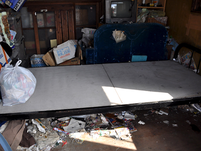 ベッドに乗せてあったマットはものごっつい湿気てましたので(しかもネズミが食べただろう後もありました)、処理するにしても何するにしても、とりあえずこの「晴れの期間中」は外で乾かしておきます。