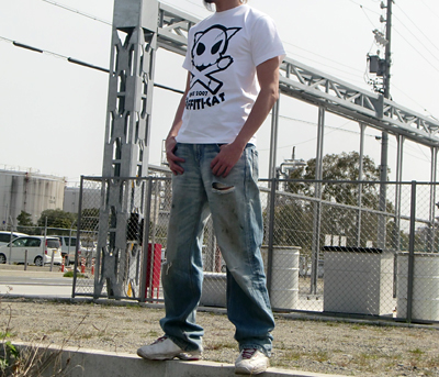 個人的な配慮として、一応白いTシャツに合うようにダブっとしたジーンズをはいてきました(これをはくと、少し足が短く見える)。