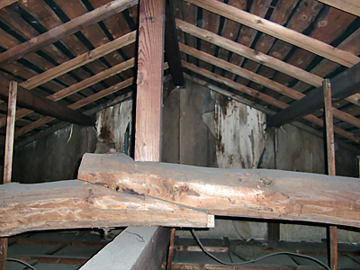 「一体屋根のどこから漏れてるんだろう・・・。瓦が割れてたりしたら、ボクらではどーしようもないなぁ」