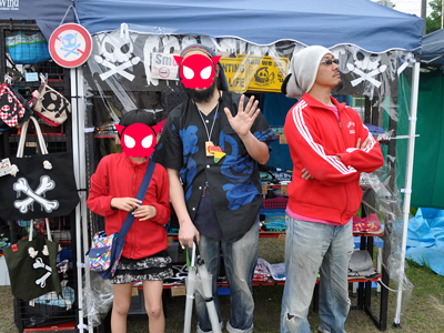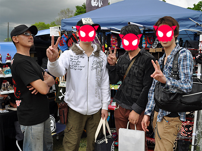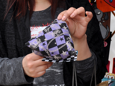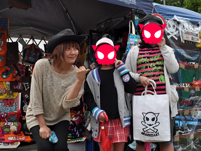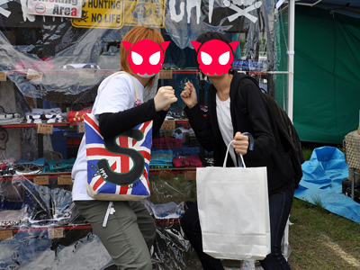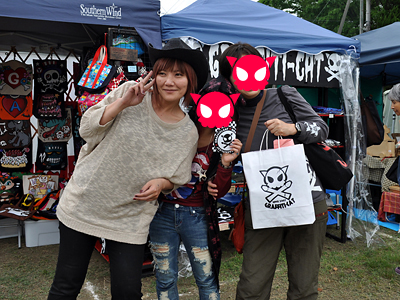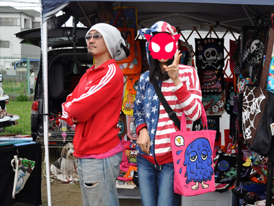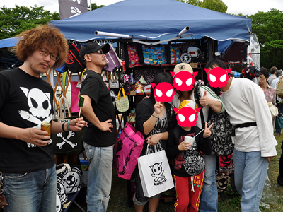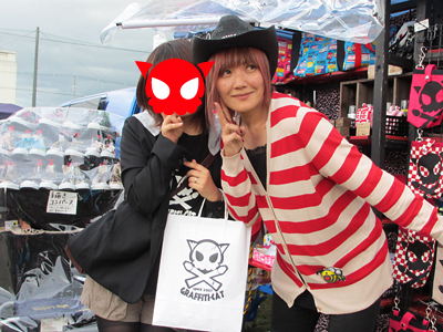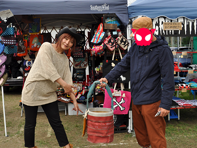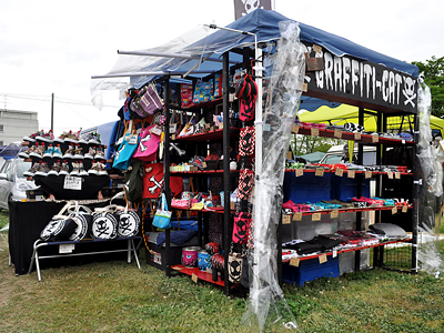 初日には展示できなかった手描きバッグブースを設営することができ、いつも通りの派手なブースができました。