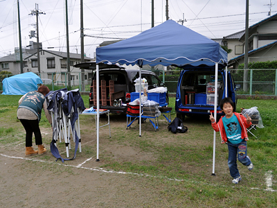 この日は前日とは違い、しっかりした地面での出展でしたので、テキパキと2ブース設営。