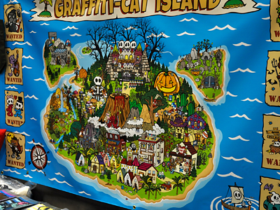 「グラフィティ★キャット島」みたいな仮想王国を作って地図をおこし、そこに登場するキャラクターを中心にアイテム展開してみました。