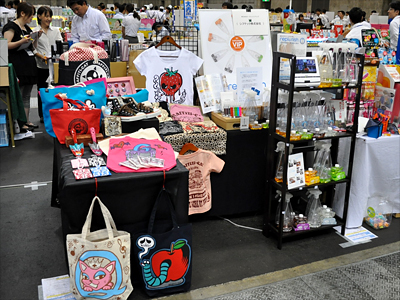 シンナー系の塗料をめっちゃ使ってるし、まぁ資金の関係で店舗作りには廃材とかは利用してるけど特にエコを考えてってことでもないし、むしろロックテイストなので反社会的だし・・・みたいな感じで、有田さんのところとは相反するコンセプトアイテムを扱うブースとなりました。