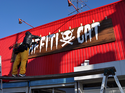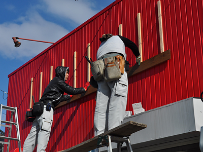 土台の取り付けが終わり、看板1枚目に着手。