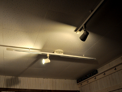 時間が前後しますが、看板取り付けの2日前、あきらびっちさんが知り合いの電気屋さんを連れてきてくれて、店舗内には電気が付きました。