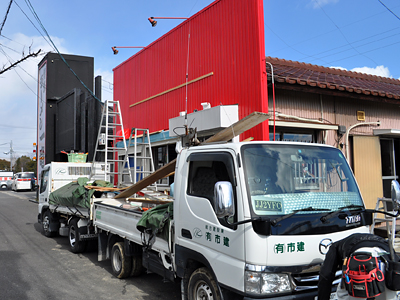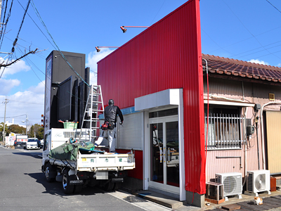 外壁塗装が終わったリアル店舗ですが、2月16日に看板の取り付け作業を行いました。