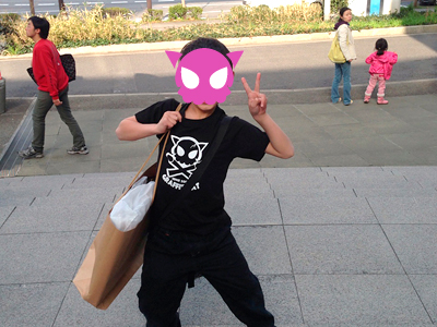 偶然にも緩里さんのお知り合いだった男の子。寒い中、買ったばかりのTシャツで外を走り回ってくれました。ありがとうございます!